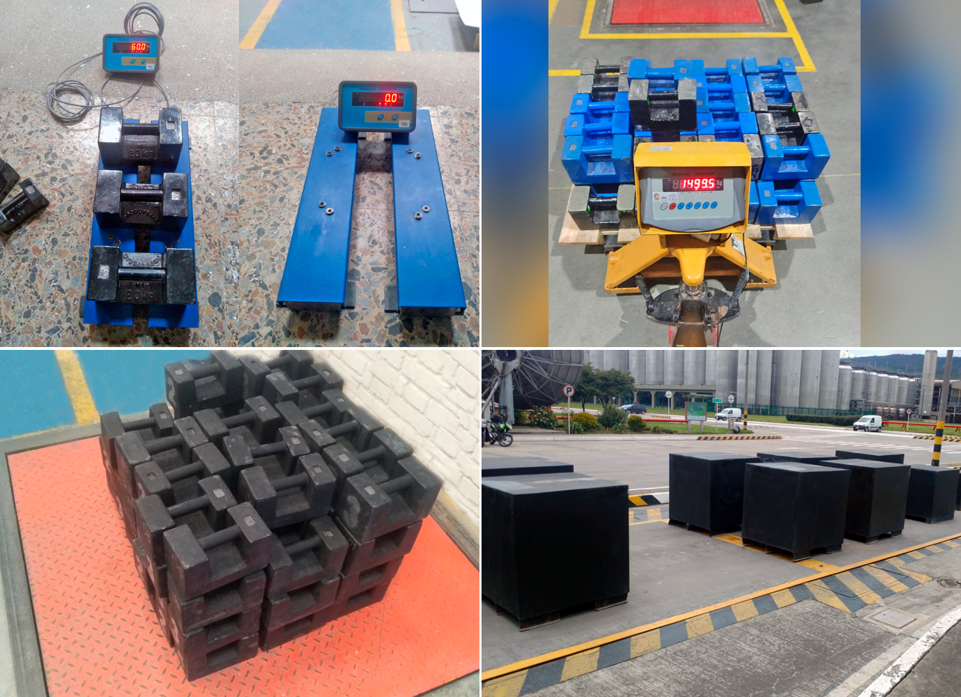 Calibración ONAC y por trazabilidad de balanzas, plataformas, camioneras, pesa pallet y barras de pesaje. Rango: 0 kg a 4000 kg.